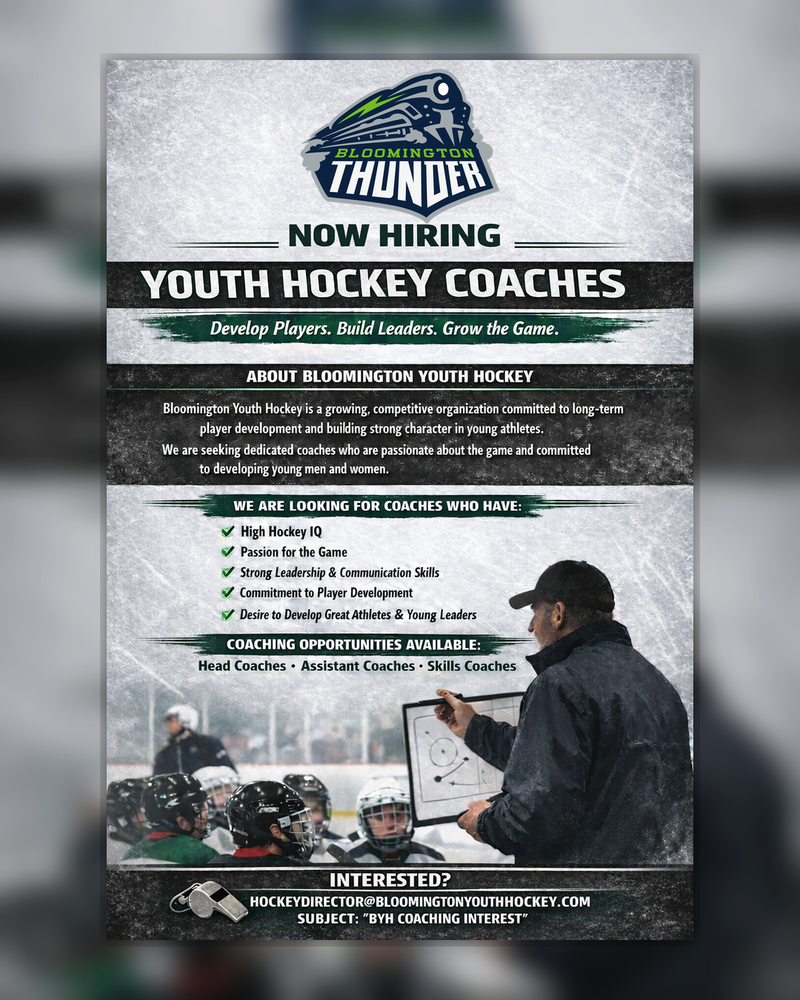 If you are interested in coaching at any level please reach out to our hockey director at hockeydirector@bloomingtonyouthhockey.com